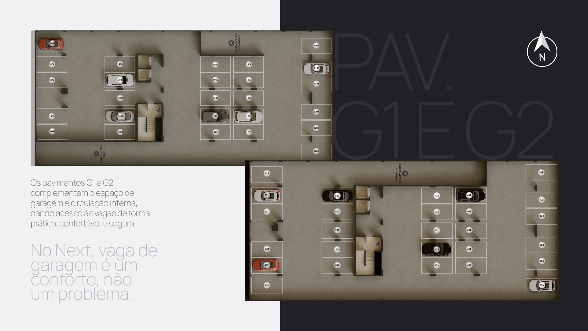 ■ 4 pavimentos de garagem, garantindo fluidez e comodidade;